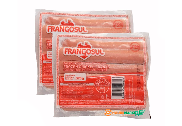 Paquetes de salchichas de pollo FRANKS de 6 unidades, peso 375 g